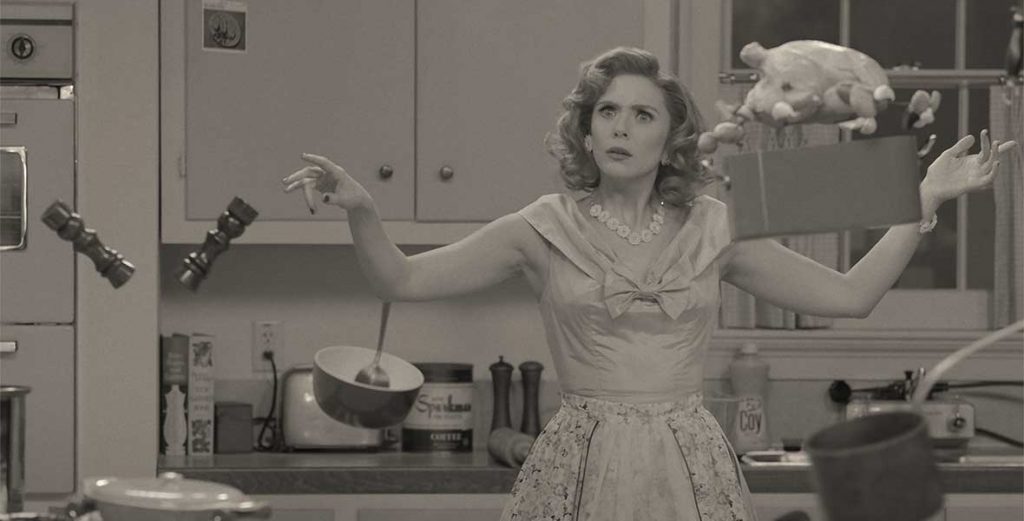 Marvel Studios’ “WandaVision” blends the style of classic sitcoms with the Marvel Cinematic Universe in which Wanda Maximoff (Elizabeth Olsen) and Vision (Paul Bettany)—two super-powered beings living their ideal suburban lives—begin to suspect that everything is not as it seems.